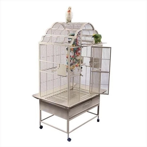 FeaturesBird proof front door & feeder door locksBird cage top opens into play topDraw bridge style door located at top frontHorizontal bars. vertical bars front & back3 swing out feeder doors & additional breeder door3 stainless steel feeder cups & 2 perchesRemovable seed catcherSlide-out grill & tray for easy cleaning4 easy rolling castersNon-toxic. durable & safe powder coated finishColor – BlackMaterial – Wrought IronDimension – 32 L x 23 W x 64 H in.