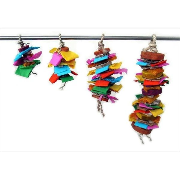 Nothing like a splash of brilliant color to draw your bird in for a closer look! Color Splash bird toys are stacked with a rainbow of colorful mixed materials with various textures to appease your pet's chewing and foraging needs.FeaturesType – Color SplashSize – LargeDimension – 16 in. x 3 in.