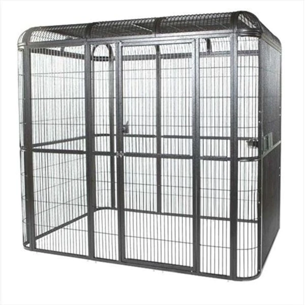 FeaturesKey locks on door2 swing out feeder doors2 stainless steel bowlsNon-toxic. durable and safe powder coated finishInterior Height – 79 in.Bar Spacing – 1 in.Door size – 69 x 25 in.Material – Wrought IronColor – BlackDimension – 86 x 62 x 79 in.