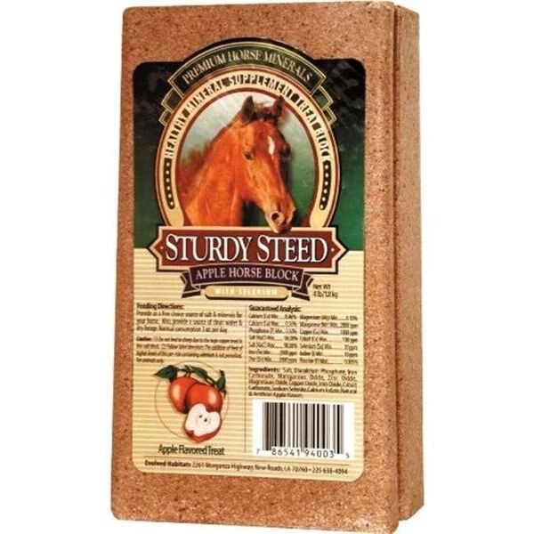 To have a pet at the home requires a lot of passion. care and love. Our Pet Supplies items consist of high quality selection of pets daily needs and everything concerning for your beloved furry pals. FeaturesEvolved Habitats Sturdy Steed Horse BlockAn apple flavored supplement block with selenium that is a treat for your horse and also supplies valuable equine materialsProvide on a free choice basis and your steed will enjoy licking this mineral supplement until it is goneQuality selection for everyday pet needsAssured hygiene and care for petsSpecificationsWeight: 4 lbs