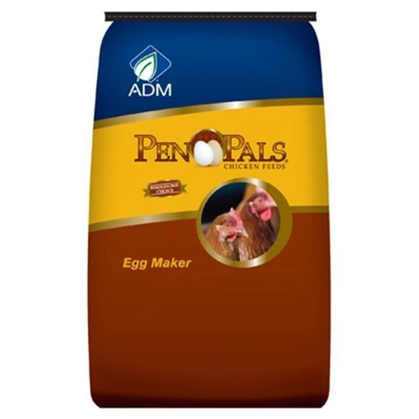 FeaturesPen pals chicken egg maker non-medicated feed crumbles. bag.Pelleted to reduce waste and improve feed efficiency.A complete feed designed to meet the needs of domestic layers in production.When fed as the sole ration.Scratch grains should not be fed with egg maker complete.Dimension – 34 x 5.5 x 15.5 in.Item weight – 50 lbs.