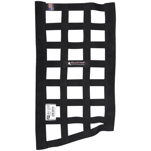 FeaturesBorder style window net has built-in vertical sleevesUsed for installing mounting rods to attach net to the chassisNet is ideal for cages that have been fitted with or updated to funny car style bars around the driverNet is SFI 27.1 certifiedSpecificationsColor: Black