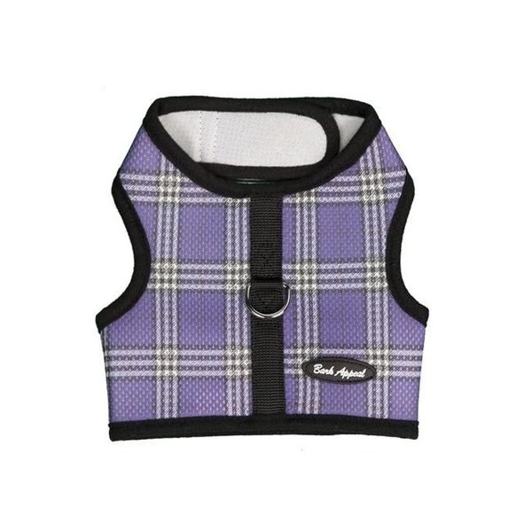 Our Plaid Wrap N Go Harness is made with high quality mesh material that creates a soft comfortable fit. The Plaid print is placed directly onto the mesh material. With the easy cloth hook and eye under the neck and chest make this harness the perfect fit for any pet.Plaid Mesh Wrap N Go Cloth Hook & Eye Harness. Lavender – Large. FeaturesChrome Polished D-RingHeavy Strength cloth hook and eyeEasy Buckle designSecure FitCalming effectSuperior QualityAdjustableAll harnesses are finished off with a PVC logo for a classy look. These features make our Harness the ideal choice for your customers.Simply Wrap and cloth hook and eye for a safe. secure buckle fit.SpecificationsColor: LavenderSize: Large