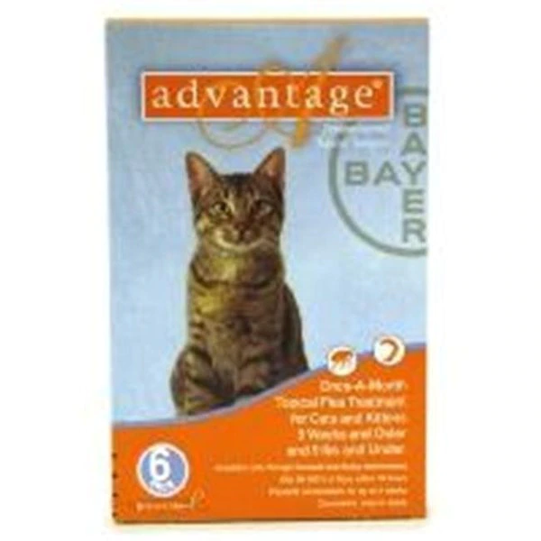 Advantage (OTC) Advantage flea control is a once-a-month topical flea treatment for dogs and cats seven weeks and older. Advantage kills 98-100 percent of fleas on your pet within 12 hours and prevents further flea infestation for up to four weeks.For Cat 0 – 9 Lbs.Color: Orange.6 per Pack.