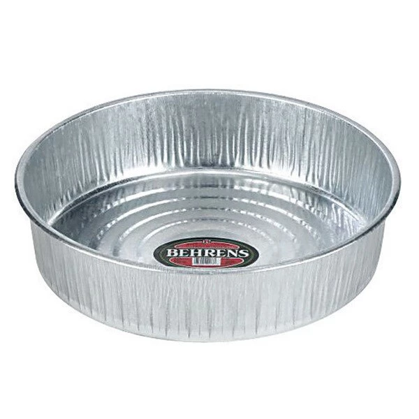 The Behrens 3-1/2 gallon galvanized seamless stock pan is useful for storage general household cleaning automotive use or pet/stock feeding. its leak-proof design can handle strong solvents and elevated temperature applications.