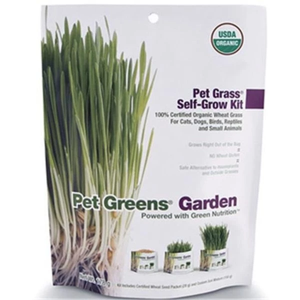 Kit includes organic wheat grass seed packet and custom soil mixture Pets looking for greens often satisfy their craving with toxic houseplants and outdoor grasses.Pet Greens Grows right out of the bag in 7 to 10 days. providing ongoing green nutrition for cats. dogs. reptiles. birds. and small animals.