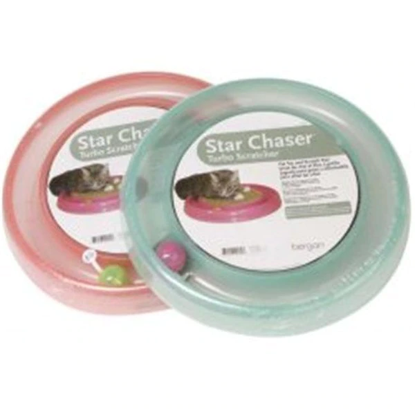 Bergan is not a traditional company. Structurally. we have no titles. complicated organization systems or traditional hierarchy. Bergan is built on the idea that people are inspired by a clear sense of direction not a prescribed list of actions. We believe if the right things are in focus. individuals will do the right thing and that discovering ones passion is not only important to job satisfaction but a critical precursor to high expectations. This exciting cat toy will give your cats hours of endless fun and exercise! It also will help reduce furniture damage that your cats cause looking for something to scratch. Motion activated LED ball and catnip included. Scratch pad and LED ball replacements available.Everything a cat enjoys – lights. catnip. scratching. action!Features LED lighted ball and fresh new colors in pink and green.The Starchaser Turboscratcher provides all cats with hours of fun and exercise.This toy reduces the potential for furniture damage from scratching.Catnip and LED ball included.Scratch pad is replaceable with Bergan Replacement Pads.