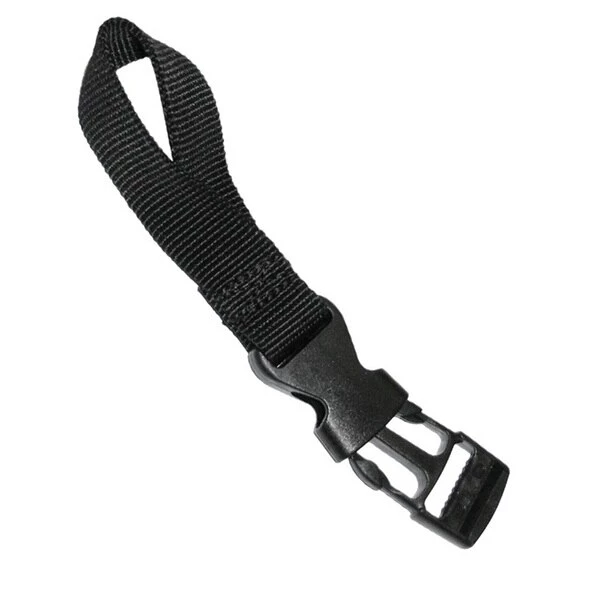 Replacement Buckle for the #1740 Best Friend Deluxe Grazing Muzzle is a plastic buckle with a loop of webbing attached to the female side of the buckle. You can easily attach this replacement without sewing by folding the loop over the metal ring and inserting the plastic buckle through the loop. Although missing in this photo, the male side of the buckle is also included and is attached by re-threading the webbing in the crown piece.