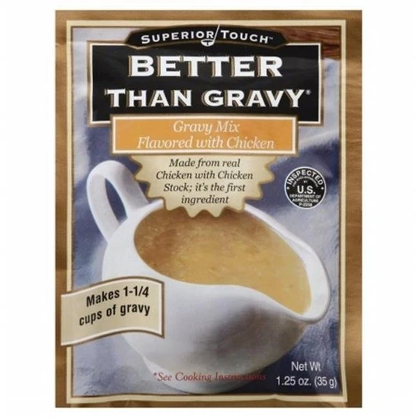 FeaturesMakes 1-1/4 cups of gravy.Made from real chicken with chicken stock. it's the first ingredient.Inspected for wholesomeness by US Department of Agriculture.Capacity – 1 oz.Pack of 12