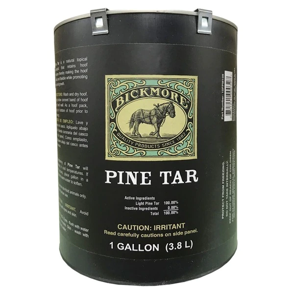 Bickmore Pine Tar is a natural antiseptic that combats fungicidal and bacterial infections. It also aids in making the hoof elastic and flexible while promoting the development of new hoof growth. Used as a hoof packing and dressing, it serves as an excellent preventative hoof care. Ideal for corns, cracks, split hooves and hard frogs.