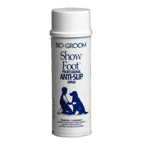 Dont let a minor misstep keep your dog from the winners circle. Show Foot Spray from Bio-Groom helps keep your dog from slipping on showroom floors or in damp grass rings. Show Foot Spray dies fast and contains only environmentally friendly, cosmetic grade ingredients for your pets safety.