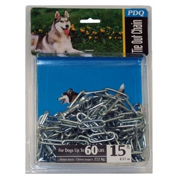Tie outWelded chain constructionPDQ- pretty darn quick assemblyExtra large- for dogs up to 60 lbsLength: 8Width: 2Height: 10