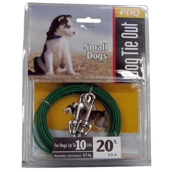 Tie out cable Vinyl coated Lightweight Great for puppies or small dogs up to 10 lbs 20' Length: 6Width: 2Height: 8
