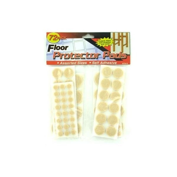 Being in the dollar merchandise business since its beginning, we know what sells, and we are always adding new and different items to our inventory. We are always looking for new items, and we have recently added pet items and craft supplies to our catalog. We design all of the packaging for our items to ensure that categories of merchandise have cohesive matching packaging, and that they are appealing to the eye. A pack of 76 beige round-shaped adhesive felt pads. Protects floors from scratches and marks. Instructions are provided on the back. Pack comes in a poly bag and header card with UPC. There are 16 large 1 1/8" diameter pads. 24 medium 13/16" diameter pads and 36 small 13/32" diameter pads.Dimensions: Length: 11Height: 11Width: 11