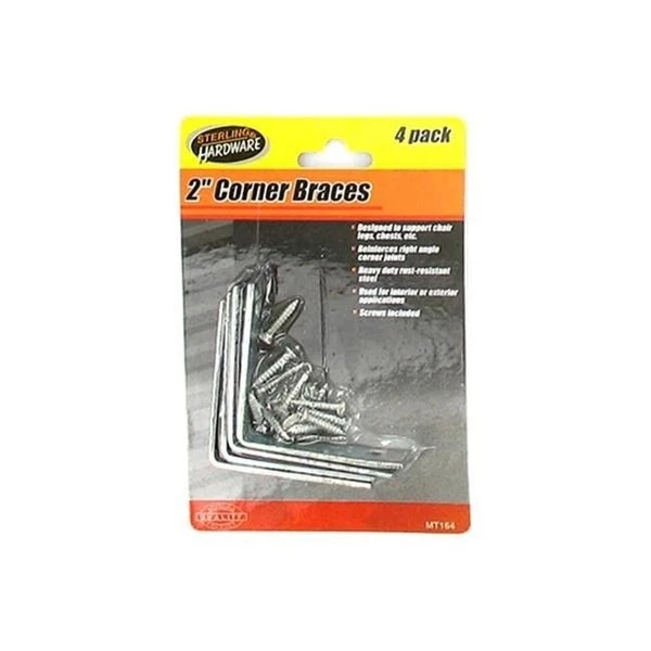 Being in the dollar merchandise business since its beginning, we know what sells, and we are always adding new and different items to our inventory. We are always looking for new items, and we have recently added pet items and craft supplies to our catalog. We design all of the packaging for our items to ensure that categories of merchandise have cohesive matching packaging, and that they are appealing to the eye. Corner braces are designed to support chair legs, chests and more. Helps reinforce right angle corner joints. Braces are made with heavy duty rust-resistant steel. Great for interior or exterior applications. Hardware is included. Each pack comes with four 2" braces. Comes packaged on a shrink wrap card with hanging hole.Dimensions: Length: 7Height: 7Width: 7