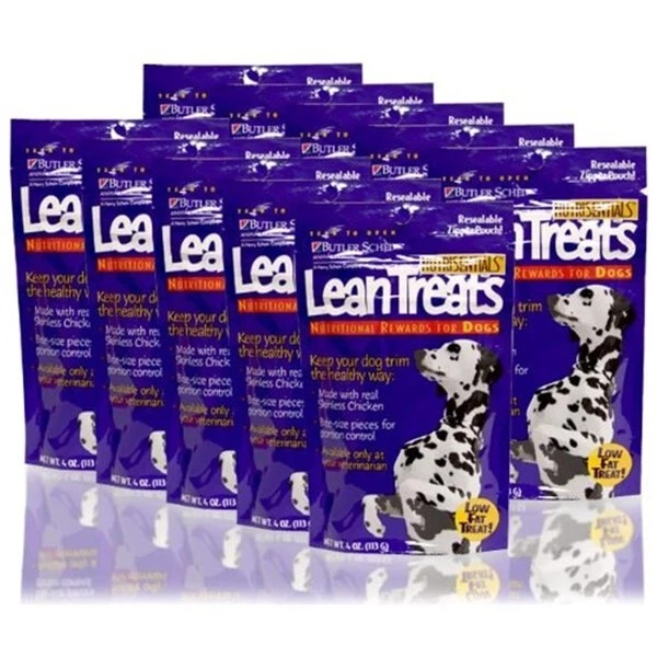 Each box contains 10. 4 ounce pouches. Each pouch contains Lean Treats for dogs. Lean Treats is a veterinarian-recommended healthy snack made with bite-sized pieces of lean. skinless chicken. Each pouch features: Soft and highly palatable treats made with real skinless chicken;; Only 7 calories per treat;; Bite-size pieces for portion control;; Veterinarians recommend;; Made in the USA.FeaturesLean treats for dogs is a veterinarian-recommended healthy snack made with bite-sized pieces of lean. skinless chickenSoft and highly palatable treats made with real skinless chickenOnly 7 calories per treatBite-sized pieces for portion controlPack of 10SpecificationsCapacity: 4 ozWeight: 3.2 lbs
