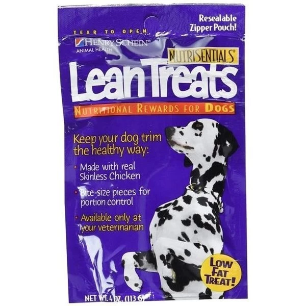 Individual. 4 ounce. resealable pouch containing Lean Treats for dogs. Lean Treats is a veterinarian-recommended healthy snack made with bite-sized pieces of lean. skinless chicken. Each pouch features: Soft and highly palatable treats made with real skinless chicken;; Only 7 calories per treat;; Bite-size pieces for portion control;; Veterinarians recommend;; Made in the USA.FeaturesLean treats for dogs is a veterinarian-recommended healthy snack made with bite-sized pieces of lean. skinless chickenSoft and highly palatable treats made with real skinless chickenOnly 7 calories per treatBite-sized pieces for portion controlSpecificationsCapacity: 4 ozWeight: 1.5 lbs