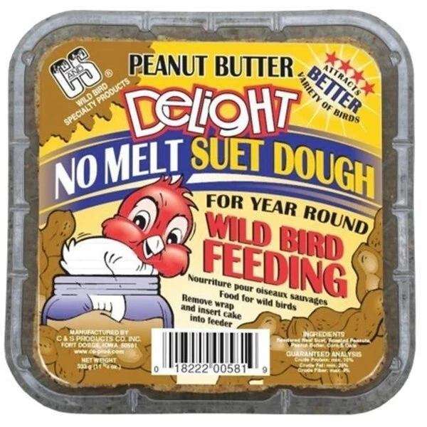 PEANUT BUTTER DELIGHTTreats become soft and pliable at 100 degrees and return to normal at room temperature.Treats and delights are nutritionally balanced to provide wild birds with much needed energy.Create less waste. less mess. and are longer lasting.Place in suet feeder and hang from the trunk or branch of a tree.Can also be placed in a nylon mesh bag.UPC : 018222005819Color : PEANUT BUTTERSize : 11.75 OUNCELength : 1.3Width : 4.9Height : 4.9Product Type : Wild Bird Food – Wild Bird Food / Suet Cakes No Melt-bestShipping Dimensions: 1.3×4.9×4.9