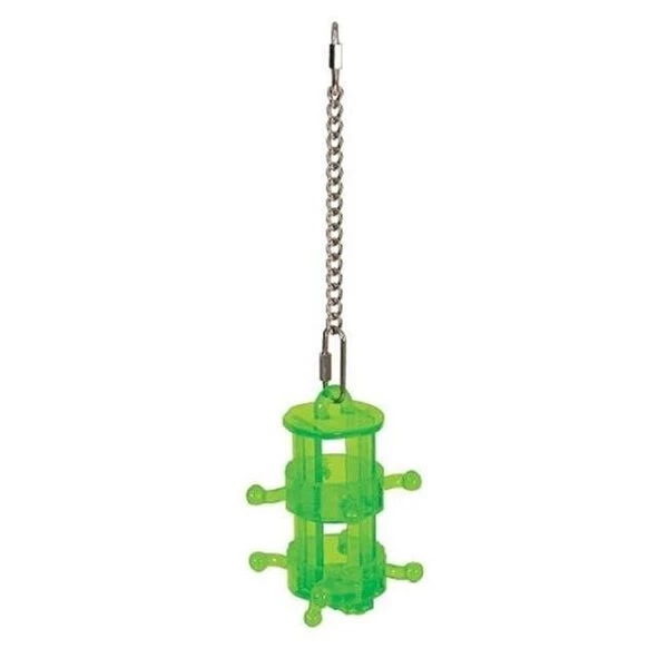 Caitec has been leading the way in pet product innovation by offering pet owners a wide range of high-quality. affordable pet products for more than two decades. by focusing on product design. value. and quality product line. Caitec is proud to be creating innovations in pet care for a better way of life.Fill upper section with fruit. nuts. veggies or your bird's favorite treat. Rotate and slide both rings up to cover the treats. Turn the rings to lock the top section in place.The Snack Rack is an ideal foraging device for intermediate foragers. bird's with some foraging experience. This toy allows you to increase the level of difficulty as your parrot's skills improve. Made from tough. durable polymer to resist being damaged by a parrot beak. will last and last. Includes nickel-plated chain and quick link.Incorporate the Snack Rack with destructible foraging boxes and/or the foraging carousel in your bird's environment and watch instinct take over!Snack Rack is a food finding puzzle toy that will provide your pet hours of foraging fun and reward him for his investment of time and effort.Challenge your parrot to raise and lower the rings to access the food reward.Fill upper section with fruit. nuts. veggies or your bird's favorite treat.Rotate and slide both rings up to cover the treats.Turn the rings to lock the top section in place.The Snack Rack is an ideal foraging device for intermediate foragers..birds with some foraging experience.This toy allows you to increase the level of difficulty as your parrot's skills improve.Made from tough. durable polymer to resist being damaged by a parrot beak. it will last and last.Includes nickel-plated chain and quick link.Incorporate the Snack Rack with destructible foraging boxes and/or the foraging carousel in your bird's environment and watch instinct take over!Measures: 6" x 4.5" x 4.25".