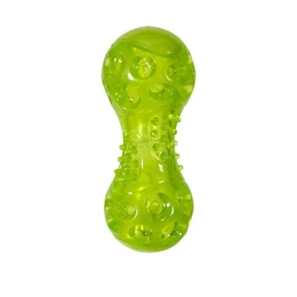 Fun and durable. soft rubber dumbbell that lights up!FeaturesDura dumbbell with LED light.Soft rubber.Size – Large.Dimension – 5.6 x 2.3 dia. in.