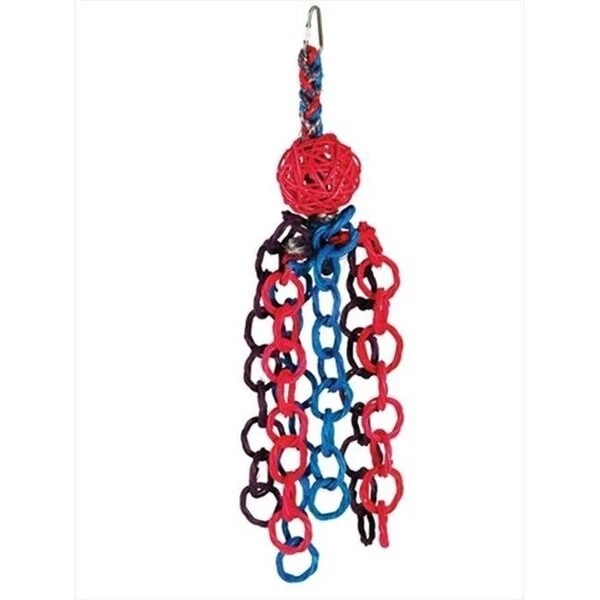 Caitec has been leading the way in pet product innovation by offering pet owners a wide range of high-quality. affordable pet products for more than two decades. by focusing on product design. value. and quality product line. Caitec is proud to be creating innovations in pet care for a better way of life.Brightly colored wicker chaBrightly colored wicker chains dangle from a wicker ball that is suspended on a braided sisal rope.Very light toy with gentle movement.Good for timid birds just getting used to toys.Dimensions: 14"L x 3"H x 4"W.