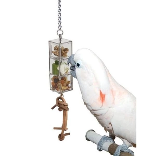 Caitec has been leading the way in pet product innovation by offering pet owners a wide range of high-quality. affordable pet products for more than two decades. by focusing on product design. value. and quality product line. Caitec is proud to be creating innovations in pet care for a better way of life.This device hangs in the cage and consists of three 2-inch pull out drawers located on 3 different sides.Parrots must open the drawer(s) to access the food or treats.Each drawer has is a positive stop to prevent it from falling out or being easily removed by the bird.This device becomes more interesting when you add a different treat in each drawere allowing the parrot to make choices based on being able to see the contents.Or. hide a treat (a nut or piece of a favorite fruit) in shredded paper and stuff it into the drawer.Measures: 2" x 2" x 13".