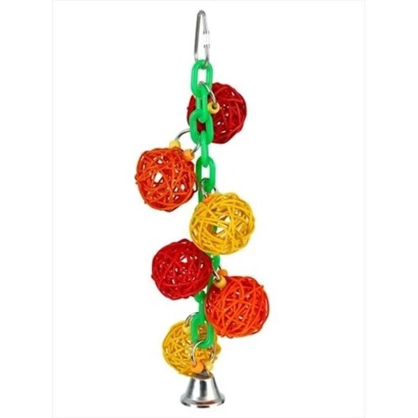 Caitec has been leading the way in pet product innovation by offering pet owners a wide range of high-quality. affordable pet products for more than two decades. by focusing on product design. value. and quality product line. Caitec is proud to be creating innovations in pet care for a better way of life.Vibrantly colored vine balls are attached to an acrylic chain with nickel plated rings.Different textures keep birds intrigued.Comes with a bell.Dimensions: 11"L x 2"H x 4"W.