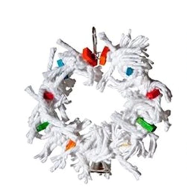 This toy made Your Bird to feel relax and Entertain. It make Birds to fun playing. Cotton snuggle ring with colorful blocks and a bell.Size – Medium