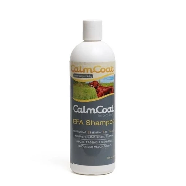 Calm Coat Essential Fatty Acid Shampoo nourishes and hydrates the skin and coat with a hypoallergenic and soap-free formula. Moisturizers promote skin hydration and our formula helps control flaking and scaling. SpecificationsCapacity: 16 ozWeight: 1.4 lbs