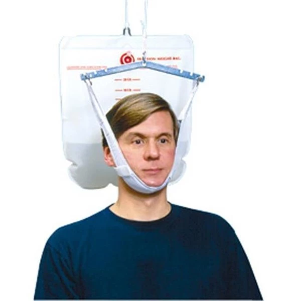 The Head Halter Over Door Traction Set is designed to provide head traction when prescribed by a physician. The set includes a water weight bag. a cervical spreader bar. a nylon braided rope. an over-door traction clamp and an adjustable Cloth Tie halter. The amount of counter weight and time of use must be prescribed by a qualified physician.
