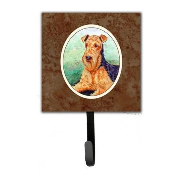 FeaturesAiredale Terrier Leash or Key HolderThe tile is made from a hardboard and is mounted to a metal rectangleThe hook hangs down from the metal plate in the back and is about 2.12 in. from the baseThe hook opens about 1 in. A hanger is attached to the metal plate and is about 1 12 in. longLots of room to hang up using a screw or paneling nailGreat for the home or office to hold keys leashes or just about anythingSpecificationsDimension: 6" H x 1.25" W x 4.25" LWeight: 0.2 lbs