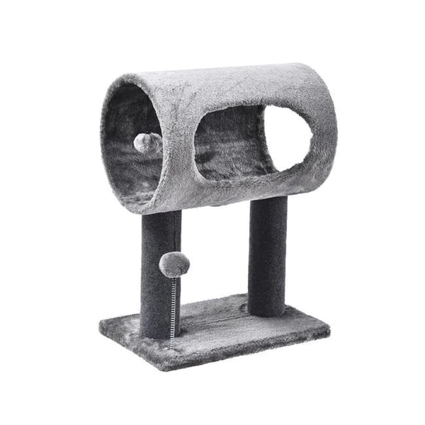 This tunnel cat bed has two scratching post is sure to attract your cat. Provides your cat with one of nature's best ways to condition claw muscles & remove old claw covering. Saves wear on your furniture. Easy to assemble. SpecificationsColor: GrayWeight: 5 lbs