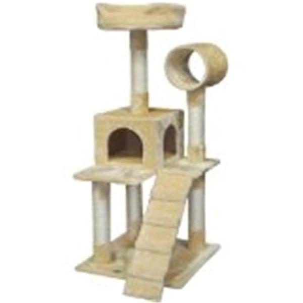 .* Color : Beige * Overall Size : 19.5"W x 25"L x 49.5"H * Base Board Size : 19.25"W x 19.25"L * Size of Condo : 12"W x 12"L x 10"H * Size of Top Bed : 13.75" Dia x 4.75"H * Size of Tunnel : 8.25"Dia x 7.5"L * Number of Ramp : 1 * Posts covered by natural sisal rope * Covering Material : Faux Fur * Board Material : Pressed Wood * Easy to assemble with step by step instruction and tools included