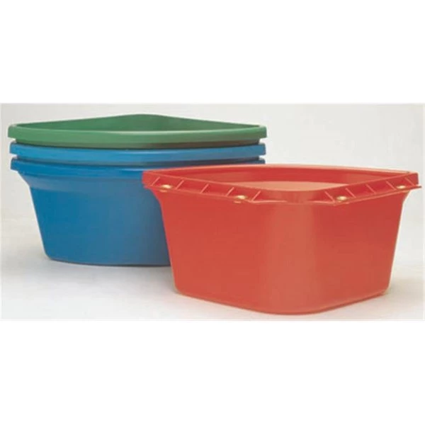 Ideal for stall feeder or waterer; front lip design keeps feed inside; fastens with bolt or double-end snaps (not included) two-piece real brass eyelets.