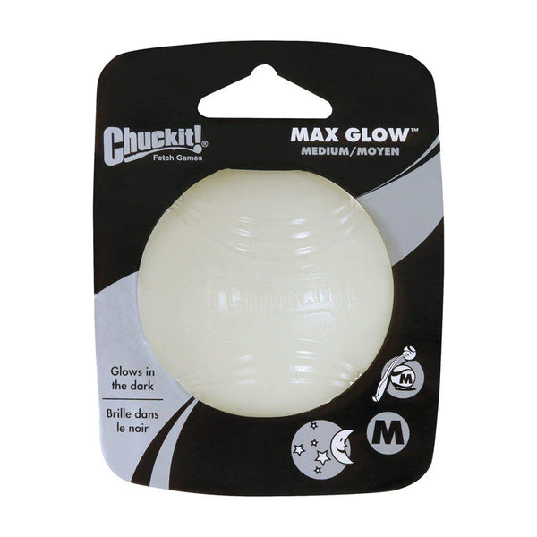 Chuckit Max glow ball gives your dog something to jump for. Durable rubber ball glows in the dark to allow the game to keep going when the sun goes down. Your dog will love this gripable rubber ball made just the right size to use with your Chuckit launcher sold separately.