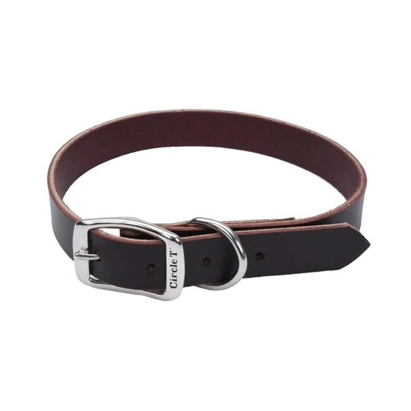 Circle T Latigo Leather Town Dog Collar is handcrafted and offers a touch of natural beauty for any well-dressed pooch.Strong leather and extremely durable dog collar will become more supple and comfortable to use in any weather, while maintaining its rich, natural coloring and beauty.