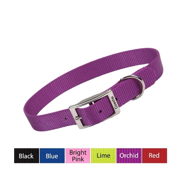 Coastal Single-Ply Nylon Dog Collar is made with durability and style in mind.Featuring a metal tongue buckle with four holes, this collar is easy to use with no adjustments needed. Includes a D-ring for ID tag and leash attachment.