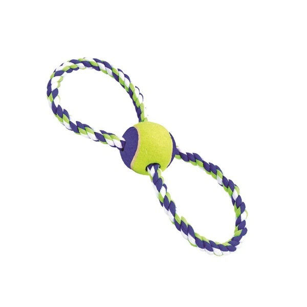 The Rascals 12" Figure 8 Rope Tug with Ball Dog Toy ramps up interactive playtime with your pooch and also promotes healthy teeth and gums.