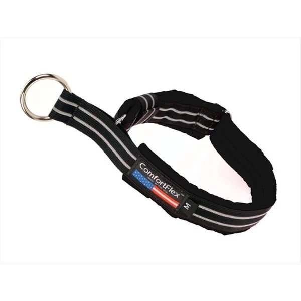 The ComfortFlex Limited Slip Collar is designed to keep your dogs both safe and comfortable on their walks.The lightly padded nylon collar goes on loose. easily slipping over the dogs head.If the dog pulls in any direction away from you. the collar then tightens down enough so that the dog can not slip out of the collar. but not enough to choke the dog. Reflective strapping makes this collar easy to see in low light situations.Highly adjustable. Machine Washable. Line Dry.Made in the USAProduct Dimensions – 11.75 x 1.5 x 1 InItem Weight – 2 ouncesSize – MediumColor – Raven.