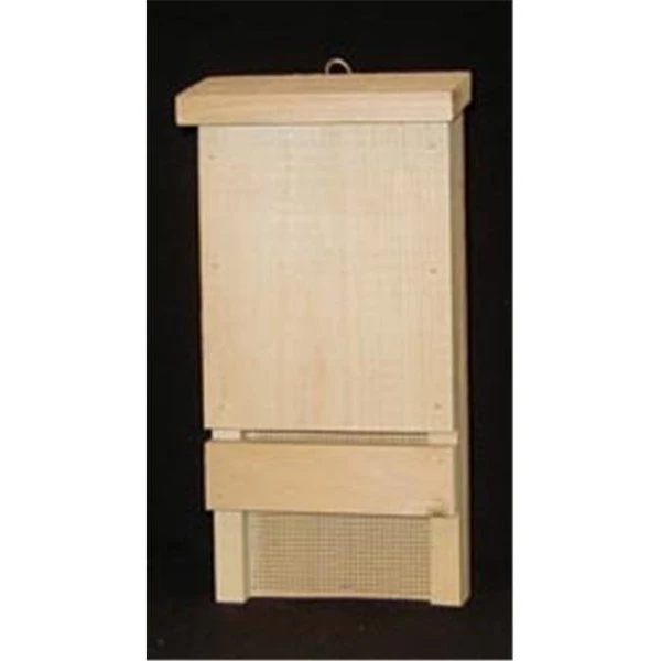 #01134 MINI BAT HOUSE (15-1/2"h x 7-1/4"w x 3-3/4"d)House up to a doze bats in this small version of the "Bat"chelor Pad. Comes complete with echo-location slot and screening against the back. Same design as our Bat House Kit. Sustainably grown 1" thick Eastern White Pine provides superior insullation. Hand crafted in Maine.