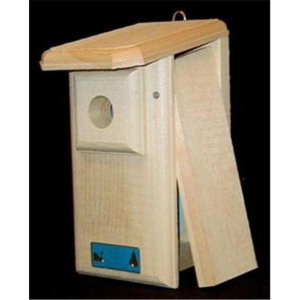 EASTERN BLUEBIRD HOUSE (12-1/2"h x 6-1/4"w x 8-1/2"d) The finest Eastern Bluebird houses on the market! Entrance hole and other dimensions are correct for the Eastern Bluebird. Wooden predator guard is standard on each bluebird house — it keeps starlings. squirrels and undesirables out. while the small floor discourages sparrow nests. As with all our nest boxes. the design includes appropriate ventilation. drainage and opens for easy clean-out. Sustainably grown 1" thick Eastern White Pine provides superior insullation. Hand crafted with pride in Maine.