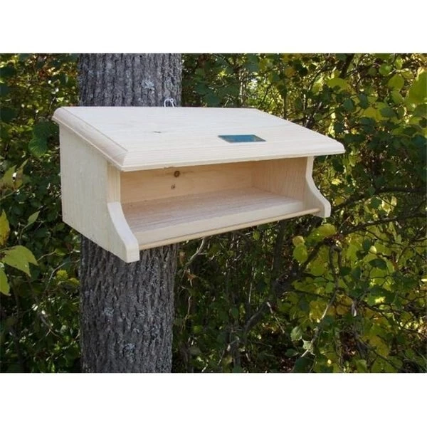 WINTER SHELTER (7-1/2”h x 17”w x 8-1/2”d) Backyard birds brave enough to stay around for the harsh winter, need shelter from the rain and snow. Come spring, shelf nesters, such as, robins and phoebes will welcome a place to build their nest. With a removable perch, this shelter provides an inviting habitat for all seasons. Hand crafted in Maine of sustainably grown Eastern White Pine.