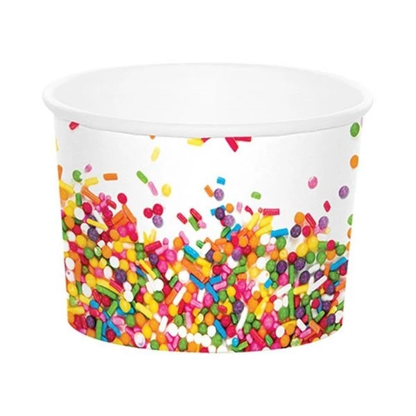 produce the most complete line of specialty paper products for the food service industry. With innovation as the cornerstone of our success. has always been the trend setter for color. fashion. and design. FeaturesSprinkles Treat CupsVibrant designs and attractive addition to your partyDurable and convenient. made of high quality materialWorks great for any event or partyPack of 126 Per PackSpecificationsCapacity: 9 ozWeight: 1.5 lbs