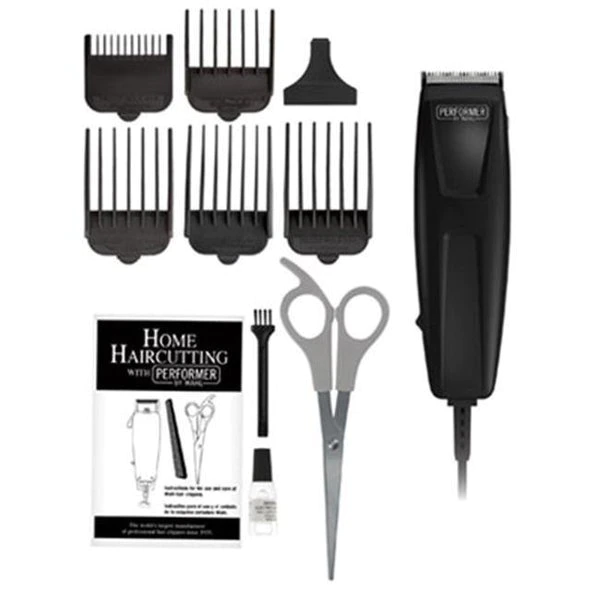 Features10 Piece.Haircutting Kit. Quick Cut Performer.Includes Clipper With Blade Guard. 5 Guide Combs. Scissors. Cleaning Brush. Blade Oil & Instructions.Self Standing Clam With Hange Holes.Dimension – 3.5 x 6.5 x 9.75 in.Item Weight – 1.04 lbs.