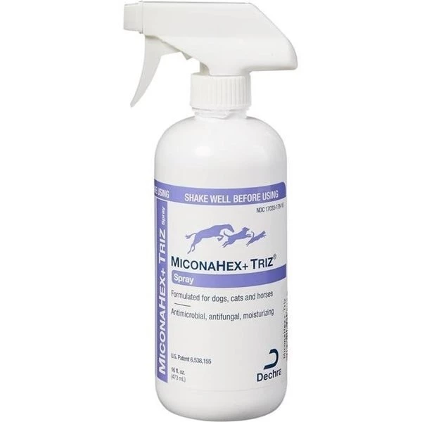 MiconaHex Triz Spray has been formulated for the support of healthy skin of animals with conditions responsive to miconazole and/or chlorhexidine. including moderate to severe fungal and/or bacterial infections. FeaturesMiconaHex Triz Spray for Cats & DogsMade from high quality materialEasy to useSpecificationsCapacity: 16 ozWeight: 1.45 lbs