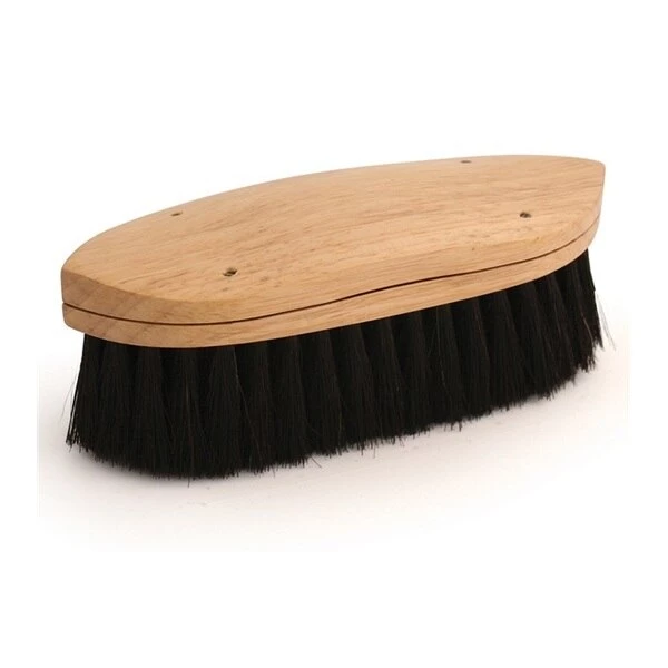 Kiln-dried, double-lacquered curved-back hardwood brush block filled with a 70:30 mix of smooth black polypropylene fiber and premium horsehair. Dual-effectiveness: stiffer polypropylene fiber stimulates hair follicles while the softer horsehair leaves a healthy, glossy coat.