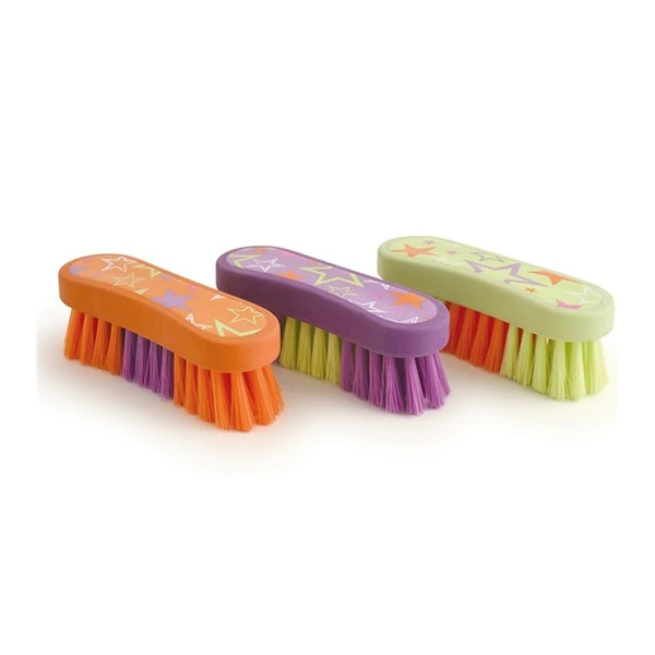 A small, dual-injected brush block with color-coordinated smooth synthetic fiber; designed for general purpose face and body grooming. Great for ponies, miniature horses; easy for children to hold and fits handily into any pocket or grooming kit! Colorful, durable and waterproof – for use everyday, or with your favorite shampoo or color enhancer!