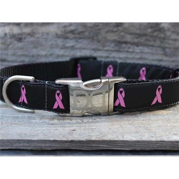 In honor of our continuing support to find the cure to breast cancer. Diva-Dog and our canine companions present the Cancer Awareness Collection.FeaturesLightweight yet durable materials. perfect for active or outdoor dogsMachine washable. color fast and will not fadeAll weather nickel plated D-ring for leash and tag attachmentDurable plastic buckle & keeper. to hold collar sizeQuality printed polyesterBreast Cancer Awareness Black Dog CollarAll-Metal Buckles:Our whisper-weight aluminum buckles weigh less than an ounce!SpecificationsSize: Extra SmallTeacup: 5/8 in. x 6-10 in.Coller Size XS/S: 5/8 in. x 10-16 in.Collar Size M/L: 1 in. x 16-24 in.Collar Size XL: 1 in. x 24-32 in.Weight: 0.06 lbs