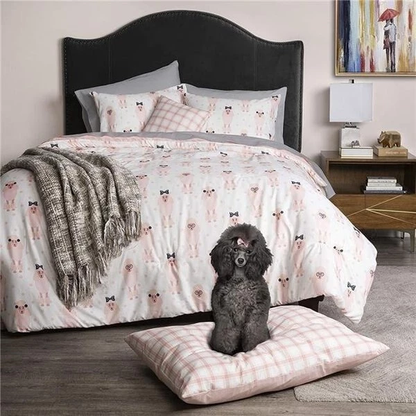 Go ahead. spoil your dog! From the textile leader Sobel Westex/Baltic Linen comes a heartwarming collection of thoughtfully designed Core. Performance & Fashion home textile products for the whole family to enjoy. The perfect upgrade for your room and your four legged friend that embellish your space and makes him happy. All of our Dog Whisperer fashion bedding includes a comforter. 2 shams. 1 decorative pillow and one coordinating pet chill pillow such that you and your pet can sleep in the same designs and comfort. every night! Our Pink Lady Collection is a playful yet stylish collection. featuring millennial pinks and paws. SpecificationsColor: Pink & WhiteSize: KingWeight: 7 lbs