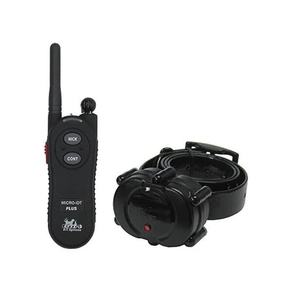 If you're looking for a training collar that's great around the house as well as in the field. look nofurther than DT Systems' Micro-iDT PLUS. This 1/2 mile range collar system has 16 levels of momentary (or Nick) and Continuous Stimulations. It als Continuous and Nick Stimulation; 900 yard range; waterproof. rechargeable collar; water-resistant. disposable battery transmitter; Expandable to 3 dogs